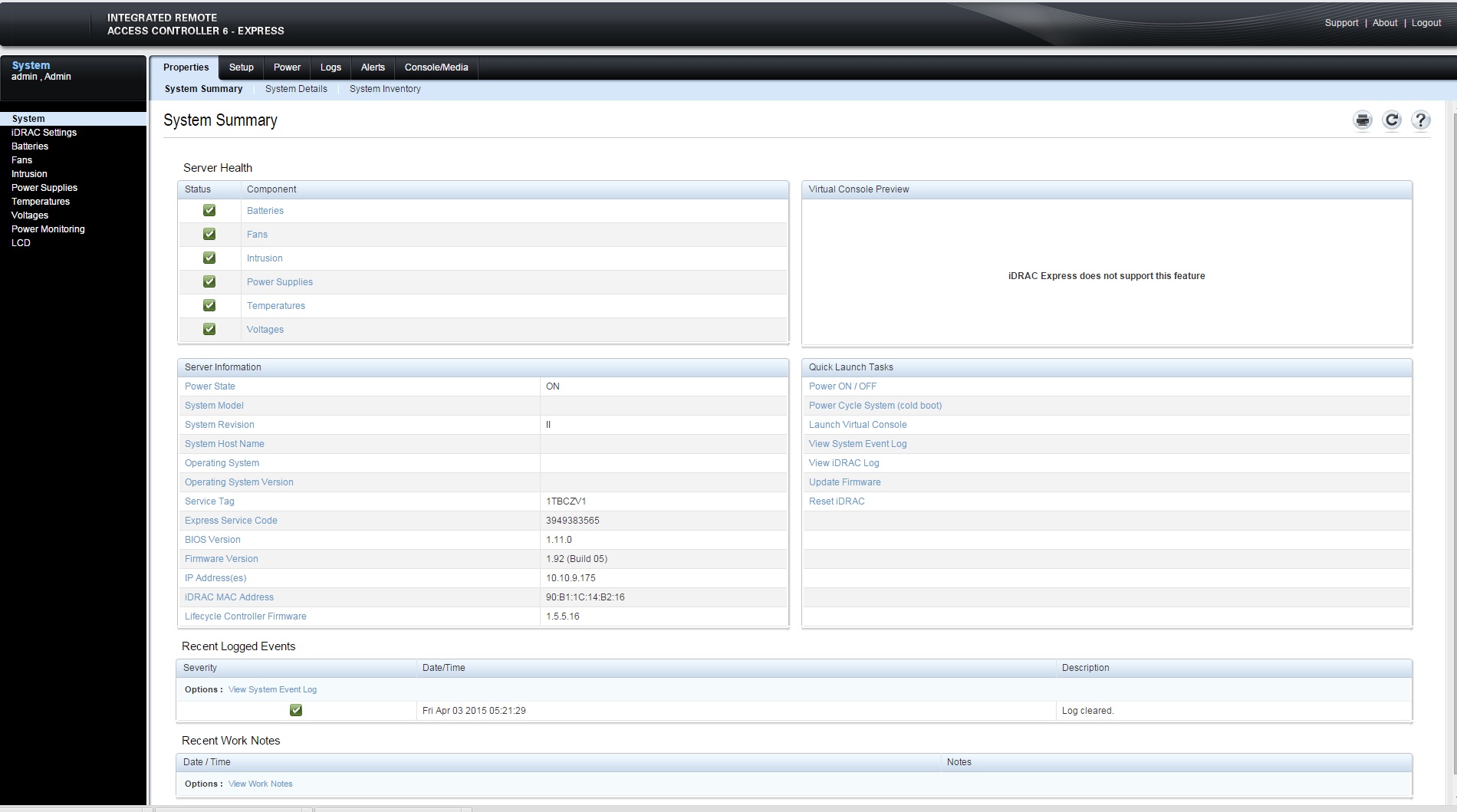 Dell's Integrated Remote Access Controller (iDRAC) gives remote access to the Dell server the Exinda is running on. It shows things like server health, power options, etc. This article gives an idea of the iDRAC configuration in case a user is unable to access iDRAC.