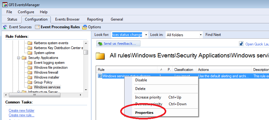 5. Once the rule is found, right-click the rule and click Properties.